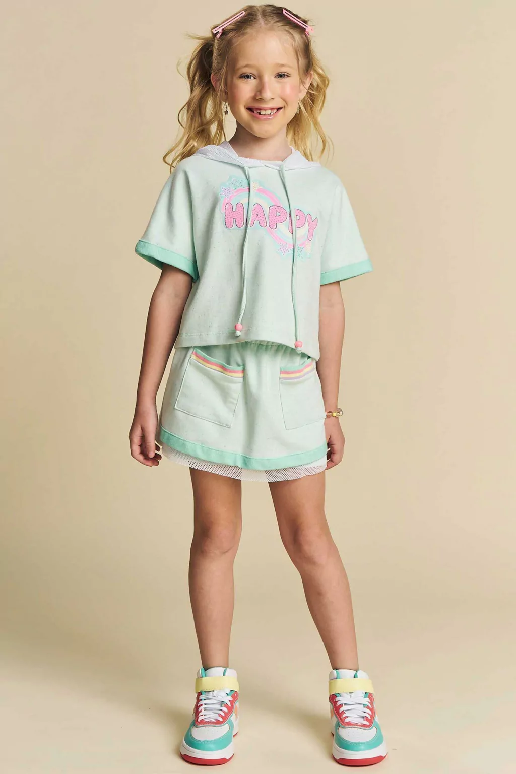 Conjunto de Blusa Boxy com Capuz e Short Saia em Molecotton Botonê Kukiê é a escolha ideal para as meninas que adoram estilo e conforto!
