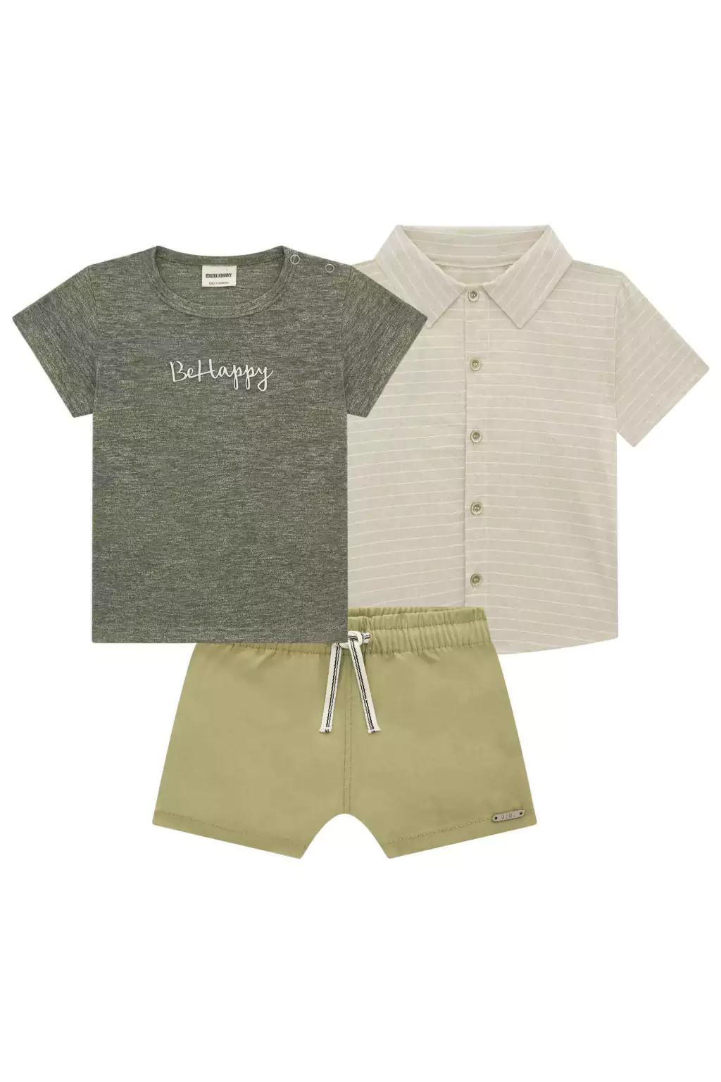 O Conjunto Três Peças Johnny Fox é a escolha ideal para o seu menino que adora estilo e conforto! Este incrível conjunto inclui: